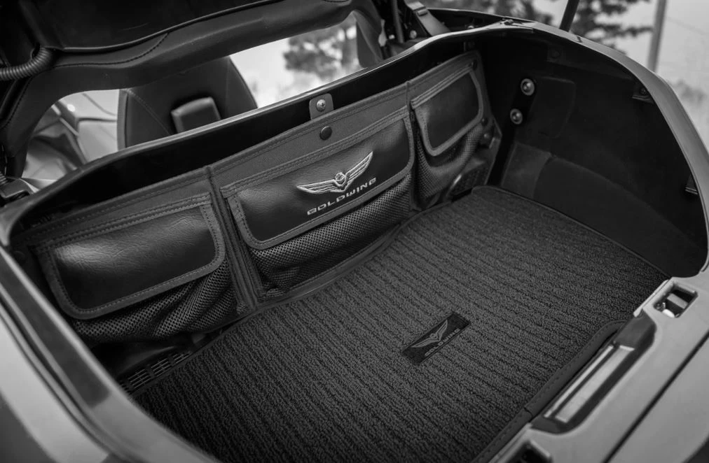 Hoogwaardige zachte mat met slipvaste onderkant voor uw topkoffer, met geborduurd Gold Wing-logo.