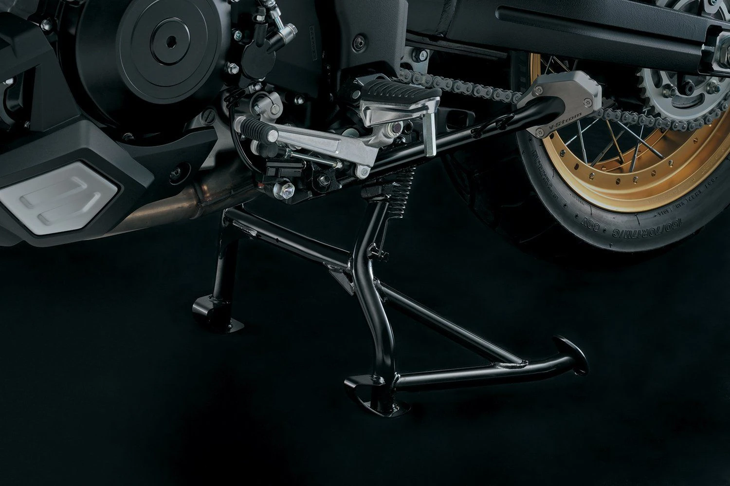 Specifiek ontwikkeld voor de V-Strom met veel aandacht voor het zwaartepunt van de motorfiets. Hierdoor is deze eenvoudig op de bok te zetten